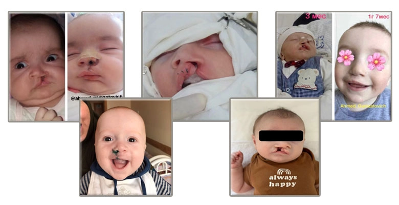 пластик верхней губы и дефектов неба после неудачных пластик.